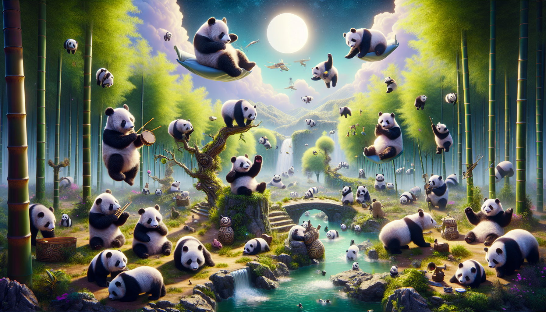 Explore the whimsical world of pandas through surreal and imaginative artwork that captures their playful spirit.